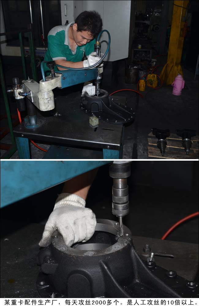 世精公司海銳特攻絲機(jī),所有關(guān)鍵零配件全部自主設(shè)計(jì)制造,拒絕攢機(jī),保證了產(chǎn)品的質(zhì)量,被廣泛應(yīng)用于各個(gè)機(jī)械加工工廠,比如:汽車零配件、泵閥企業(yè)、液壓配件廠家等。以下為公司產(chǎn)品在各個(gè)廠家的應(yīng)用照片展示。海銳特攻絲機(jī)按照動(dòng)力類型分類,分為氣動(dòng)攻絲機(jī)和電動(dòng)攻絲機(jī);按照攻絲能力分類,分為I型攻絲機(jī)、II型攻絲機(jī)、III型攻絲機(jī)、IV型攻絲機(jī),攻絲能力為M3-M60;按照攻絲方向分類分為,垂直型攻絲機(jī)、水平型攻絲機(jī)、萬(wàn)向型攻絲機(jī)、周向型攻絲機(jī)等。